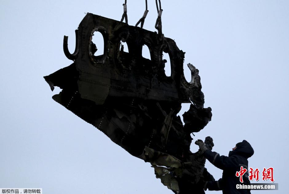 当地时间2014年11月16日,乌克兰顿涅茨克地区,坠毁MH17飞机残骸收集工作进行中。