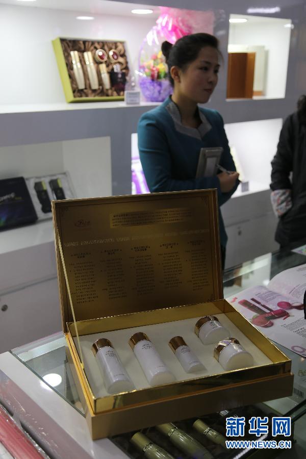 这是11月16日在朝鲜平壤牡丹峰区北塞洞一家化妆品店拍摄的的售价129美元(约合790元人民币)的母亲节化妆品套装。新华社记者陆睿摄 图片来源:新华网