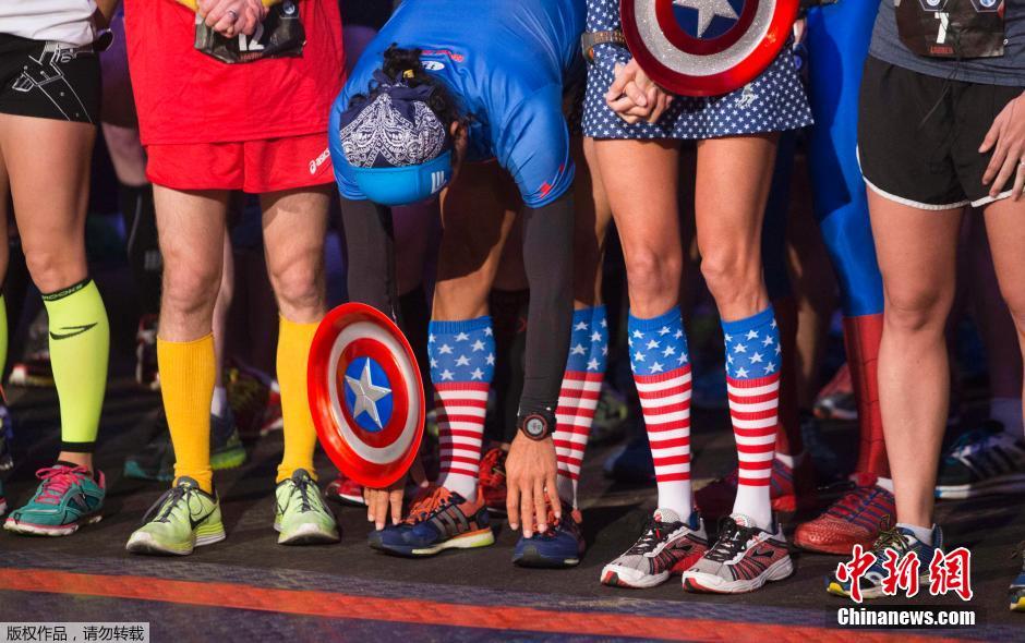 当地时间11月16日,美国加利福尼亚州阿纳海姆的迪斯尼乐园,“复仇者联盟”半程马拉松赛开跑。选手们身着各种超级英雄的服饰,欢乐起跑。