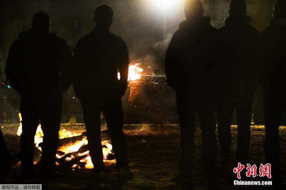 西班牙传统火牛节 公牛犄角点燃熊熊烈火