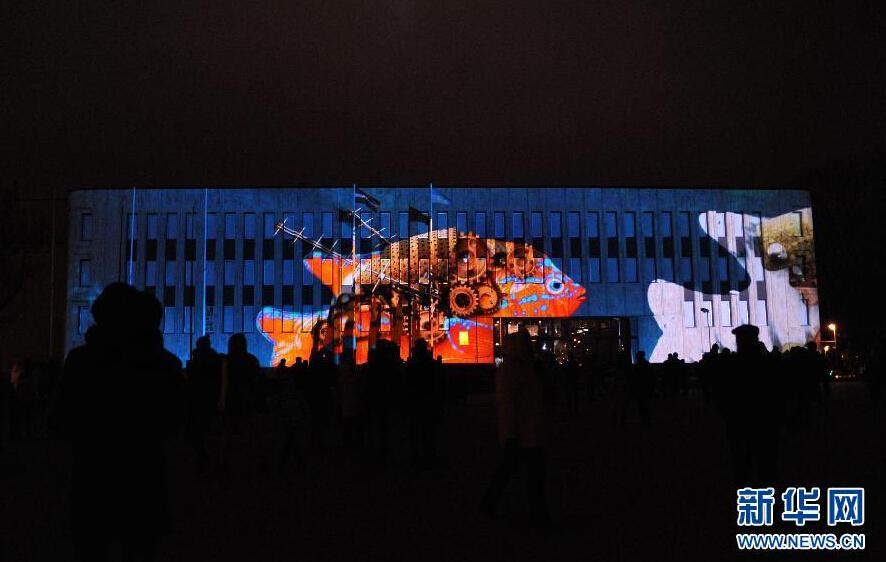 当地时间2014年11月16日,拉脱维亚首都里加举办为期5天的“炫亮里加2014”灯光节活动,夜幕中千万盏华灯同时绽放,形形色色灯光变换闪烁,吸引大批市民和游客前来观赏。这是里加第七次举办灯光节,也是里加作为今年“欧洲文化之都”的系列重要活动之一。郭群 摄 图片来源:新华网