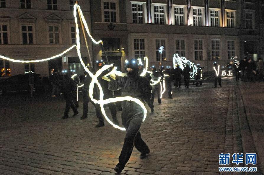 当地时间2014年11月16日,拉脱维亚首都里加举办为期5天的“炫亮里加2014”灯光节活动,夜幕中千万盏华灯同时绽放,形形色色灯光变换闪烁,吸引大批市民和游客前来观赏。这是里加第七次举办灯光节,也是里加作为今年“欧洲文化之都”的系列重要活动之一。郭群 摄 图片来源:新华网