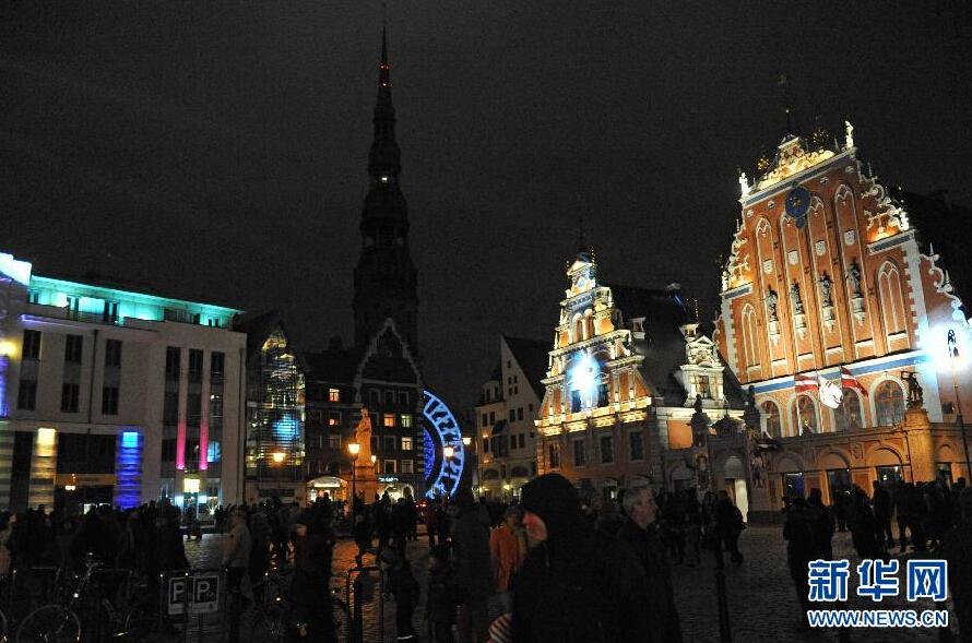 当地时间2014年11月16日,拉脱维亚首都里加举办为期5天的“炫亮里加2014”灯光节活动,夜幕中千万盏华灯同时绽放,形形色色灯光变换闪烁,吸引大批市民和游客前来观赏。这是里加第七次举办灯光节,也是里加作为今年“欧洲文化之都”的系列重要活动之一。郭群 摄 图片来源:新华网