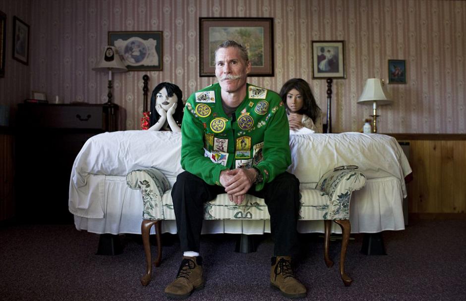 在1986年有了第一个孩子之后,Chris的老婆就跟他离婚了,并且带走了他的女儿。在此后数年里,Chris都无法联系到她们,他在社交网络上到处寻找,终于找到了女儿并与她团圆。但是经过前妻的事件,他无法再与女性建立起感情。受伤的Chris现在有两个玩偶伴侣,一个是Lala Salama(斯瓦西里语,意为甜美的梦)(左),一个是Sharon(右)。(网页截图)