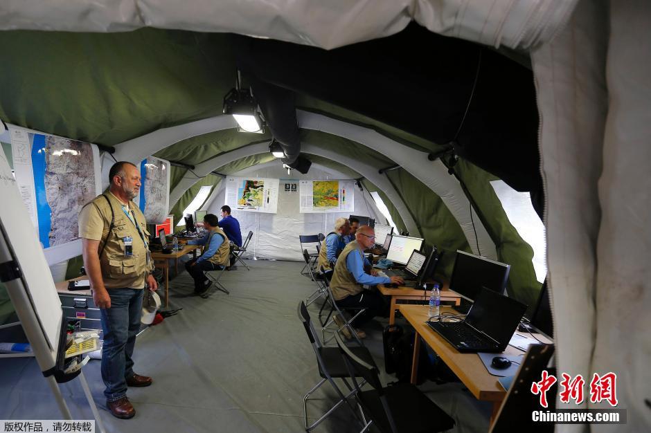 当地时间2014年11月16日,约旦死海,当地举行防核反恐演练,来自全面禁止核试验条约的工作人员在演练现场进行排查。