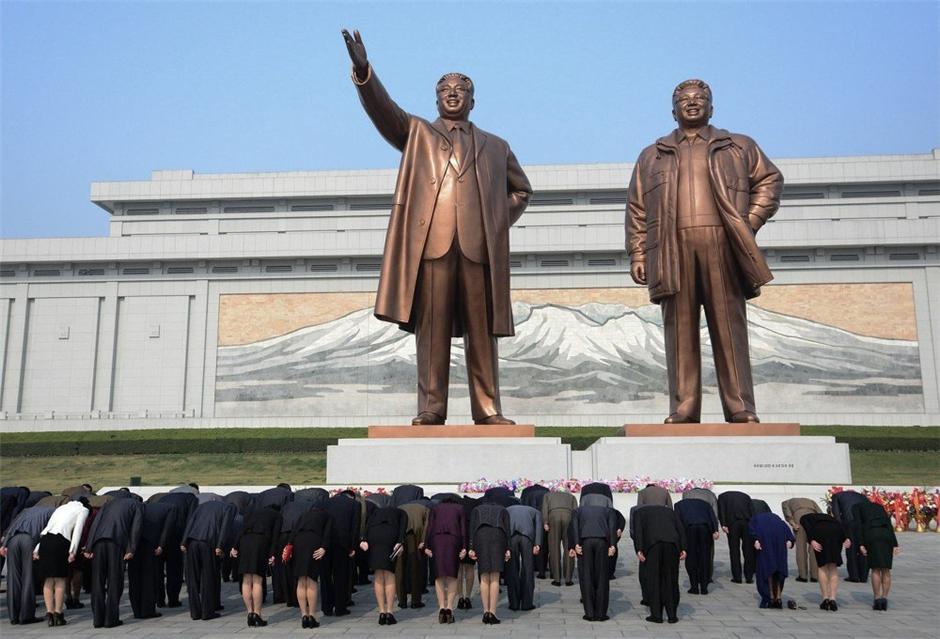 中新网11月24日电 俄罗斯“卫星”通讯社网站近日刊登了一组关于朝鲜人民生活的图片,展示了一个外界从未了解的平壤社会。图为平壤市民瞻仰朝鲜已故领导人金日成和金正日的雕像。