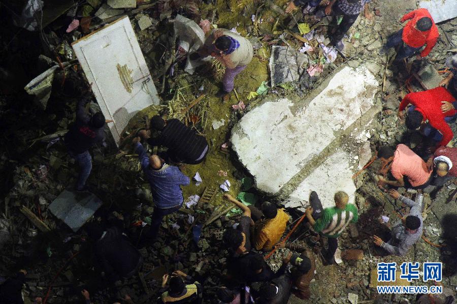 11月25日,在埃及首都开罗东北部,人们在楼房坍塌事故现场展开救援。当日凌晨,埃及开罗东北部一栋楼房坍塌,截至目前,造成至少11人死亡,7人受伤。 新华社发(戈玛摄)