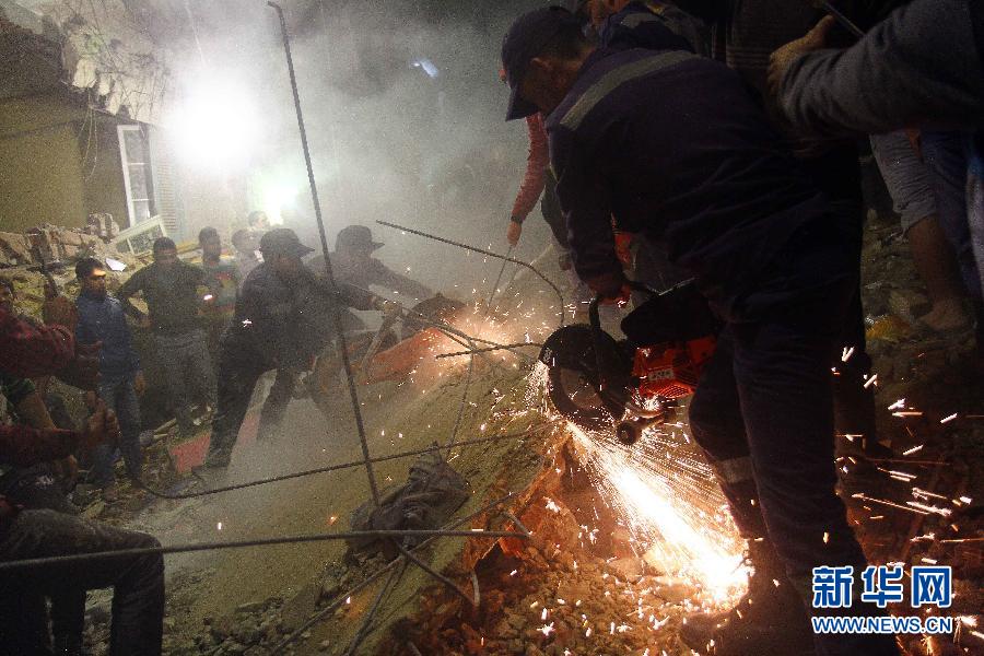11月25日,在埃及首都开罗东北部,救援人员在楼房坍塌事故现场展开工作。 新华社发(戈玛摄)
