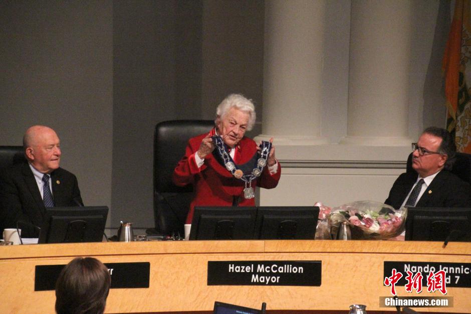 被称为“黑兹尔飓风”的麦考莲1978年首次当选密西沙加市长,随后连选连任。2010年,麦考莲赢得了她个人连续第12届的市长选举。其后不久,麦考莲表示她将不再寻求连任。在麦考莲连续36年的领导下,密西沙加从一个只有17.2万人的加拿大无名小村镇,跃升为拥有71.3万人的加拿大第六大城市。 中新社发 捷克佳 摄