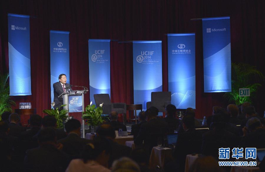 12月2日,在美国华盛顿,中国国家互联网信息办公室主任鲁炜在第七届中美互联网论坛上演讲。为期一天半的第七届中美互联网论坛2日在华盛顿开幕。此次论坛的主题为“对话与合作”。中国国家互联网信息办公室主任鲁炜、美国副国务卿凯瑟琳·诺韦利出席论坛并发表演讲。新华社记者 殷博古 摄
