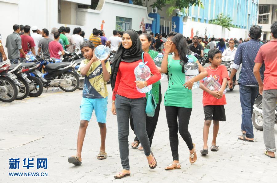 12月5日,在马尔代夫首都马累,当地居民在免费供水点取水后离开。受马尔代夫供水公司火灾影响,马尔代夫首都马累5日全城停水。据报道,4日下午2时左右,马尔代夫供水公司发电机电缆和配电盘着火,并引发严重火灾。消防和救援人员迅速赶到现场,约一个半小时后火势得到控制。新华社记者杨梅菊摄