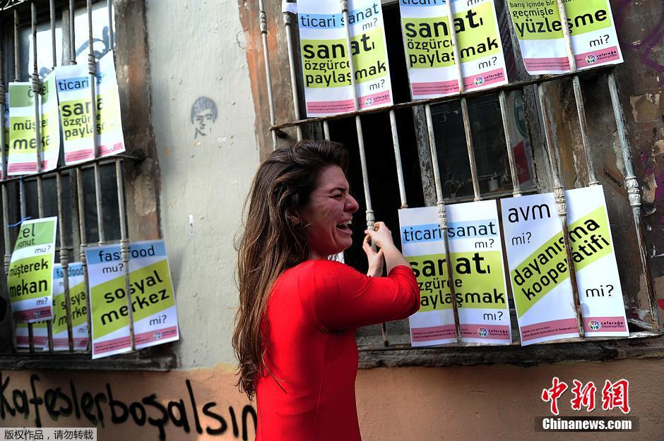 当地时间2014年12月9日,土耳其伊斯坦布尔,当地一栋房屋将被强制改建为会议中心,租户组织抗议。