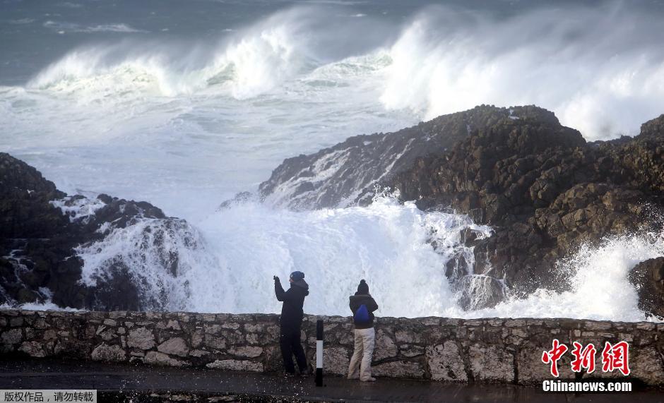 当地时间2014年12月10日,英国Cumbia,巨浪拍打着 Whitehaven码头。英国气象局发布警告,称在大西洋上空急速发展的“气象炸弹”将袭击英国,这一风暴将给英国西北部沿海地区带来大风与“异常高”的巨浪。由于风暴的影响,轮渡与多个列车服务已经被取消,苏格兰地区所有学校和托儿所已经关闭。