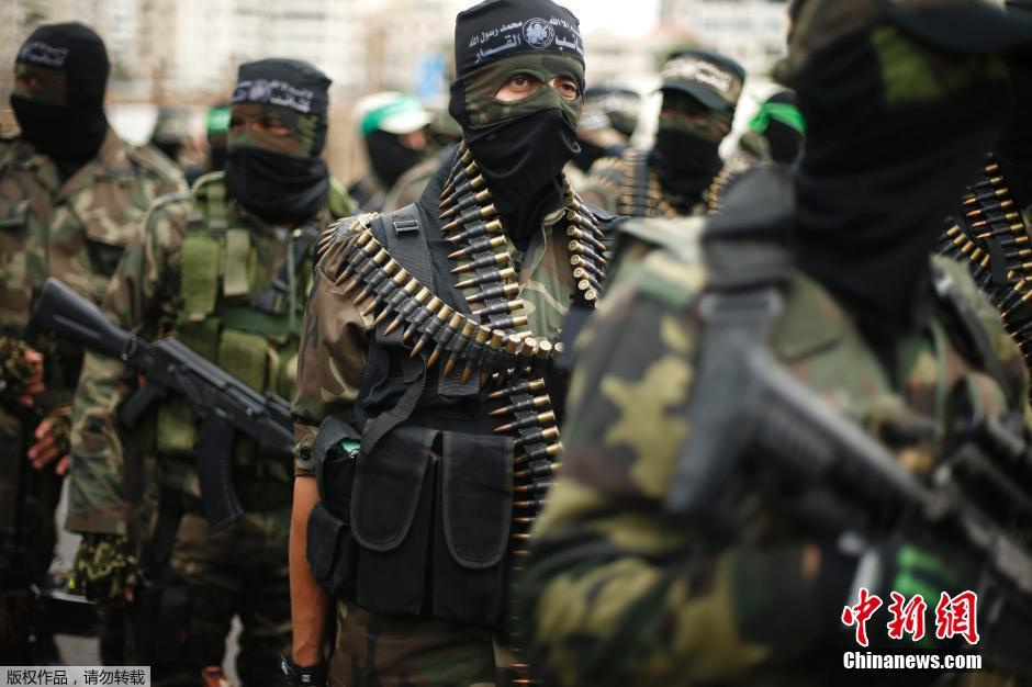 当地时间2014年12月14日,加沙地带,巴勒斯坦卡桑旅的成员准备庆祝哈马斯成立27周年。