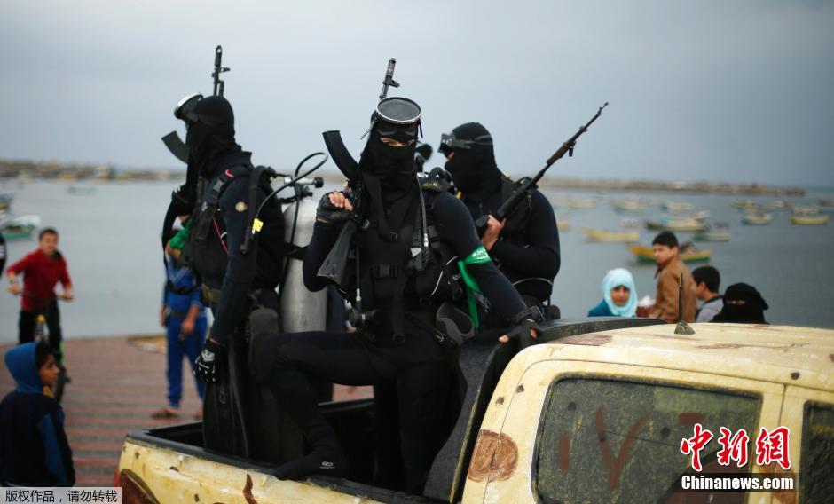 当地时间2014年12月14日,加沙地带,巴勒斯坦卡桑旅的成员准备庆祝哈马斯成立27周年。
