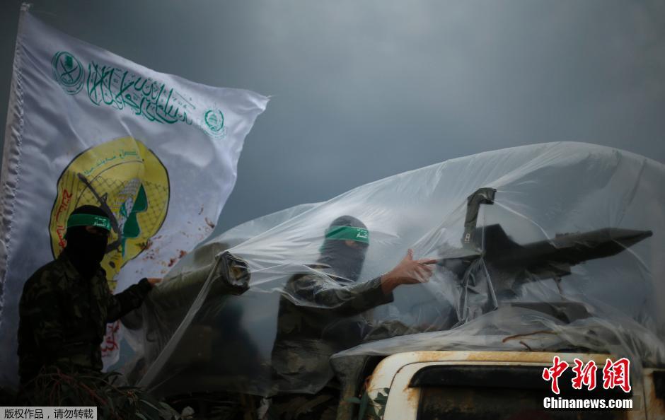 当地时间2014年12月14日,加沙地带,巴勒斯坦卡桑旅的成员准备庆祝哈马斯成立27周年。