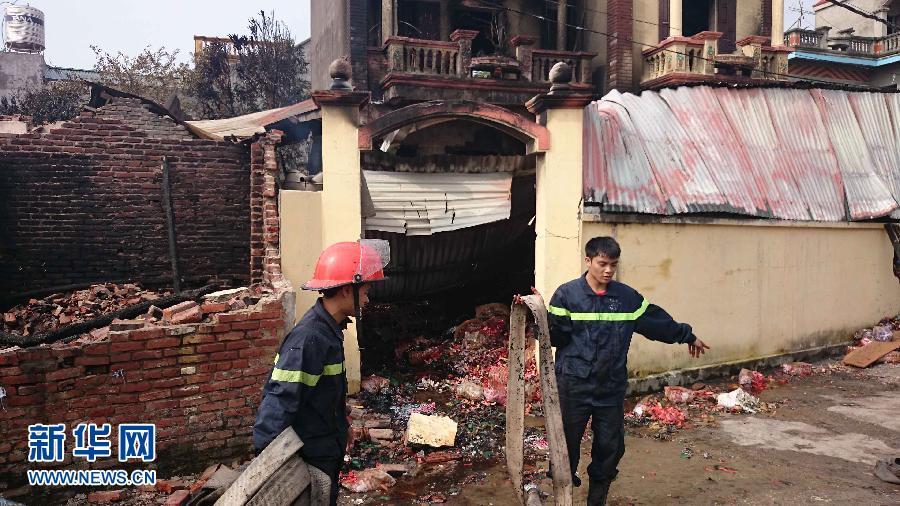 12月15日,在越南北部北宁省,消防人员在火灾现场工作。 12月14日深夜,越南北部北宁省一家销售祭祀用品的商店发生火灾,造成3人死亡,另有3人受伤。 新华社/越通社