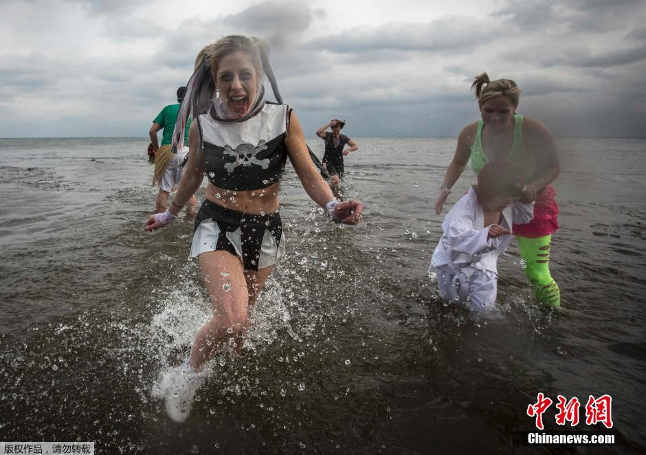 当地时间2015年1月1日,加拿大各地民众参加“北极熊冬泳”活动庆祝新年,为慈善机构募捐。