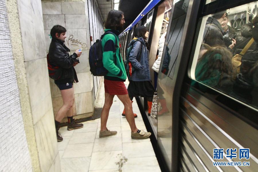 1月11日,在罗马尼亚首都布加勒斯特,人们参加首次“不穿裤子搭地铁”活动。 “不穿裤子搭地铁”活动于2002年在美国纽约开始,当时只有7个人参加,但之后迅速发展。目前,这个源于纽约的行为艺术已经演变为世界多个城市的年度活动。新华社发(佩特雷斯库摄)