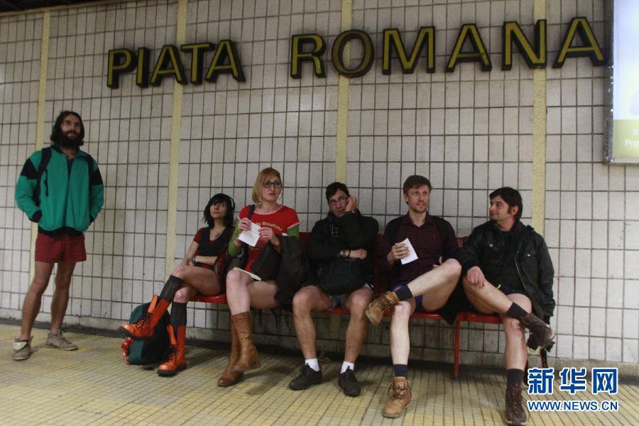 1月11日,在罗马尼亚首都布加勒斯特,人们参加首次“不穿裤子搭地铁”活动。 “不穿裤子搭地铁”活动于2002年在美国纽约开始,当时只有7个人参加,但之后迅速发展。目前,这个源于纽约的行为艺术已经演变为世界多个城市的年度活动。新华社发(佩特雷斯库摄)
