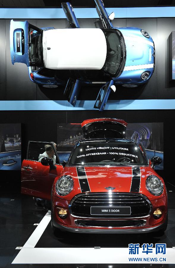 这是1月15日在比利时布鲁塞尔第93届欧洲汽车展媒体日上拍摄的全新MINI5门小车。布鲁塞尔第93届欧洲汽车展当日拉开帷幕,展览将持续至25日。 新华社记者叶平凡摄