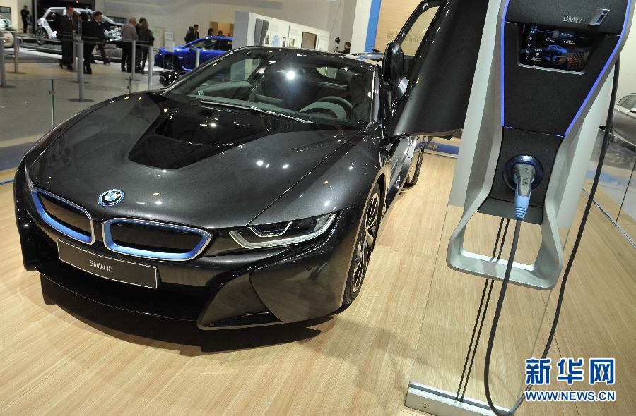 这是1月15日在比利时布鲁塞尔第93届欧洲汽车展媒体日上拍摄的宝马i8混合动力概念车。布鲁塞尔第93届欧洲汽车展当日拉开帷幕,展览将持续至25日。 新华社记者叶平凡摄