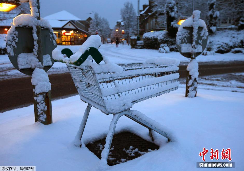当地时间2015年1月21日,英国巴克斯顿,当地遭遇强降雪天气。