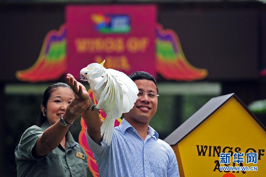 1月21日,在新加坡裕廊飞禽公园,新加坡国家发展部政务部长李智陞(右)出席“亚洲珍禽”鸟舍的开幕仪式。新华社发(邓智炜摄)