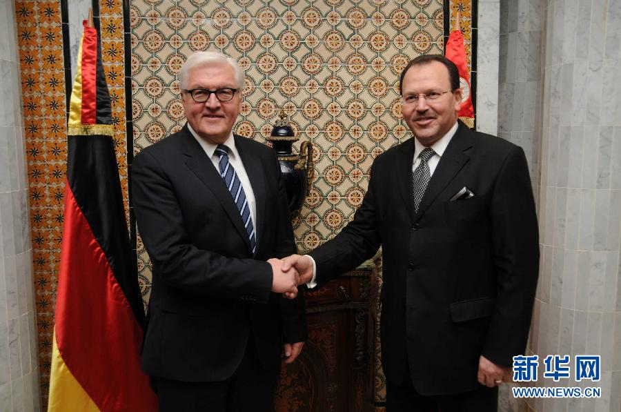 1月23日,在突尼斯首都突尼斯市,德国外长施泰因迈尔(左)与突尼斯外交国务秘书费萨尔·齐亚会见。 当日,德国外长施泰因迈尔访问突尼斯。新华社发(阿代尔摄)