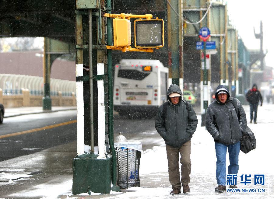 1月26日,在美国纽约,行人冒雪走在街头。美国东北部自26日开始迎来一场暴风雪。美国国家气象局说,这场暴风雪将给美国东北部地区带来最高约90厘米降雪和强风。这一天气将持续到28日。新华社记者 秦朗 摄