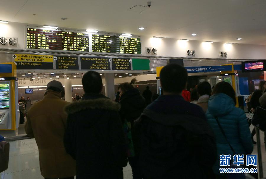 1月26日,人们在美国纽约肯尼迪国际机场接机。美国东北部自26日开始将迎来一场暴风雪。超过4000架航班已被取消,该地区5800万人将受到暴风雪影响。 新华社记者 秦朗 摄