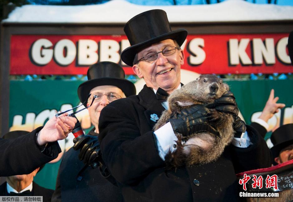 当地时间2月2日,美国宾夕法尼亚州,全美各地大约1.1万人赶到宾夕法尼亚州土拨鼠镇,围观土拨鼠的预测仪式。著名土拨鼠“菲尔”从巢穴中走出来,很快找到放置的食物抱着吃了起来,并看见了自己的影子。这预示着人们还要忍受至少六周寒冷的冬季风雪天气。