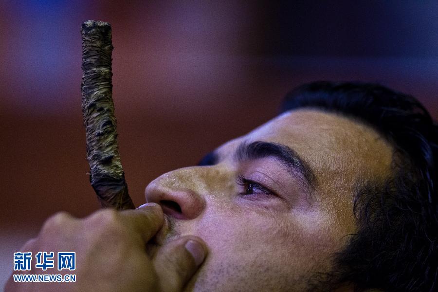 2月26日,在古巴首都哈瓦那,一名男子参加最长雪茄烟灰大赛。