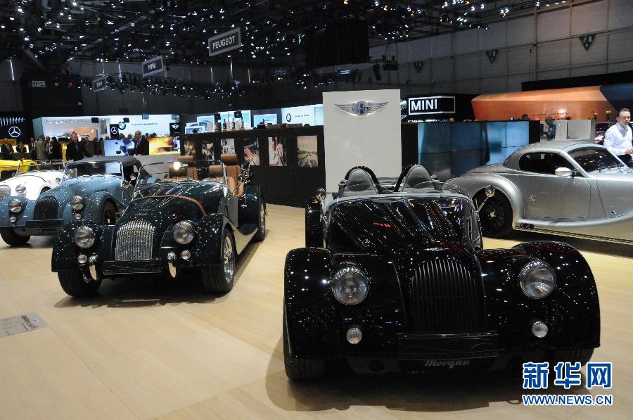 这是3月3日在瑞士日内瓦车展媒体日上拍摄的摩根汽车公司展台。第85届日内瓦车展将于3月5日至15日举行。本届车展组委会表示,将有来自全球的220家主要汽车制造商的900余款车型参展。车展也将吸引来自世界各地约70万观众参加,成为车迷的“盛宴”。新华社记者施建国摄