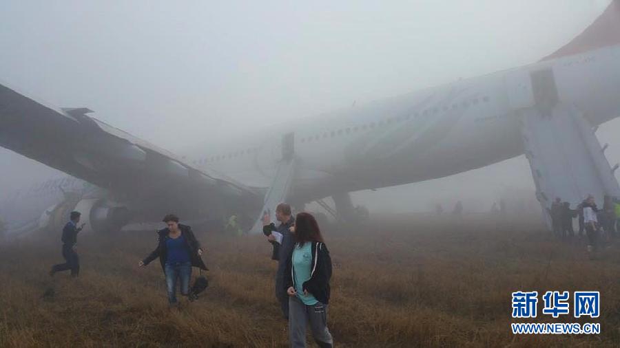 3月4日,在尼泊尔首都加德满都特里布万国际机场,乘客从飞机上紧急撤离。当日,一架土耳其航空公司客机在尼泊尔首都加德满都特里布万国际机场降落时冲出跑道,所幸没有造成人员伤亡。 新华社发(阿尼尔·凯沙里·沙阿摄)