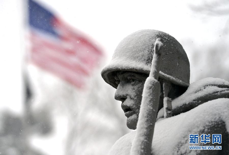 3月5日,在美国首都华盛顿,一处雕像被积雪覆盖。当日,华盛顿遭遇入冬以来最强的一次暴风雪,气象部门预计降雪厚度将达20厘米。大雪导致华盛顿地区数百架航班取消,当地政府部门和学校放假一天。新华社记者殷博古摄