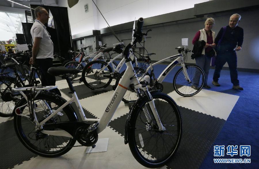 3月7日,在加拿大温哥华举行的户外探险与旅游展上,市民参观新型电能自行车。当日,2015户外探险与旅游展在温哥华举行。该展吸引了约200个展商参展,展出产品都是民众较少接触的户外活动产品,为参观者提供新奇的户外活动体验。新华社发(梁森摄)