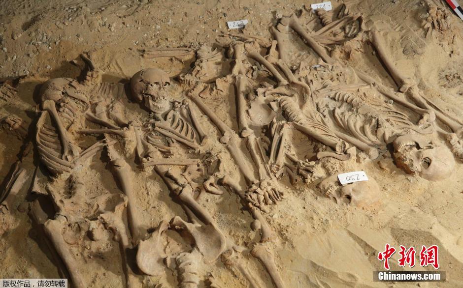 当地时间2015年3月10日,法国巴黎,考古学家在墓地工作。考古工作者与建筑工人一起掘开法国巴黎市中心的一家“不二价”超市的底部时,发现令人震惊的一幕,200余具人类尸骨排列整齐地被埋藏在地下,专家推测他们死于中世纪的黑死病。根据初步发掘,这个墓地由8个墓室组成,其中,7个墓室各埋有5至20具左右的尸骨,剩下的1处墓室则堆积了超过150具尸骨。而最令人惊讶的是,这些尸体并不是被简单丢弃的,所有遗骸头脚相接排列整齐,很显然是为了节约空间。