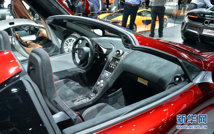这是2015年纽约车展上展出的迈凯伦超级跑车(4月2日摄)。在2015年纽约车展上,一批国际知名汽车厂商纷纷推出新款或升级版超级跑车。 新华社记者王雷摄