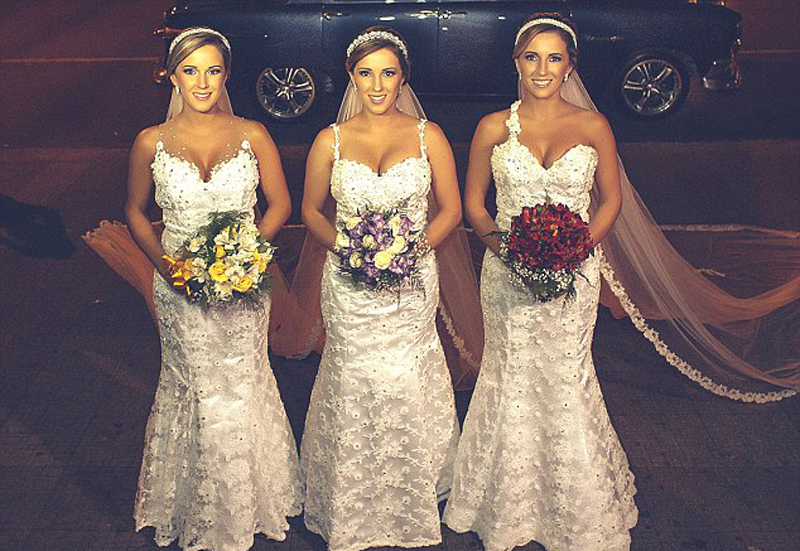 巴西三胞胎姐妹在同一天举行了一场集体婚礼。(网页截图)
