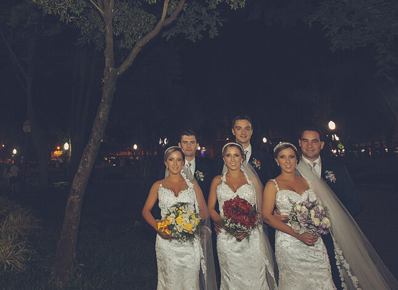 巴西三胞胎姐妹和她们的未婚夫。(网页截图)