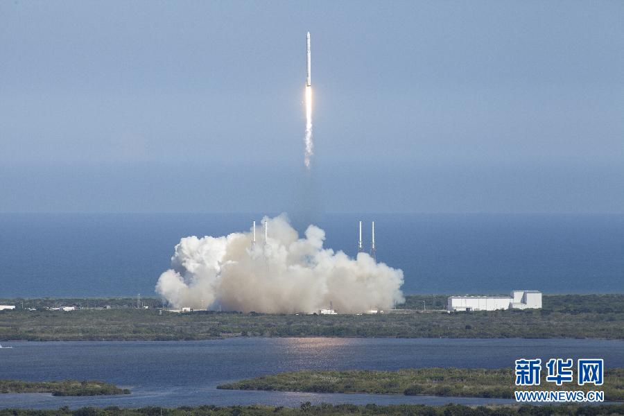 美国航天局4月14日发布的照片显示,太空探索技术公司的“猎鹰9”火箭搭载“龙”飞船从佛罗里达州卡纳维拉尔角空军基地升空。美国太空探索技术公司14日向国际空间站发射“龙”飞船,执行该公司第六次空间站货运任务,但其让火箭第一级垂直降落在海上一艘无人船上的尝试再次失败。新华社发