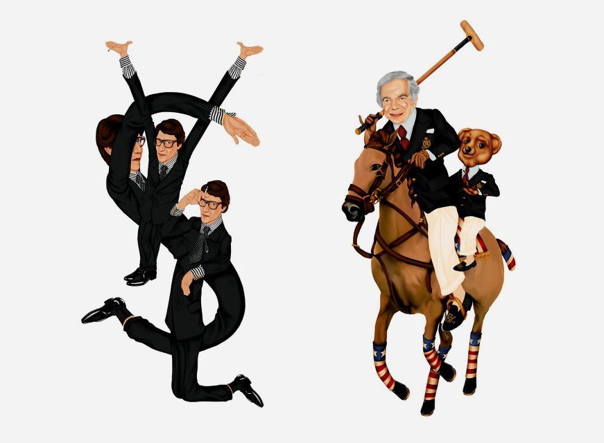 曾将卡通人物海绵宝宝化身为明星和时尚偶像而声名大噪的荷兰艺术家Mike Frederiqo再出奇招,为时尚品牌LOGO改造全新面貌。可可·香奈儿女士以柔软身段摆出招牌双C标志,伊夫·圣·洛朗重现经典YSL向大家致意,拉尔夫·劳伦与自家小熊相约打马球,马克·雅各布则使出浑身解数表达自由奔放,尽显搞怪叛逆的个人特质。