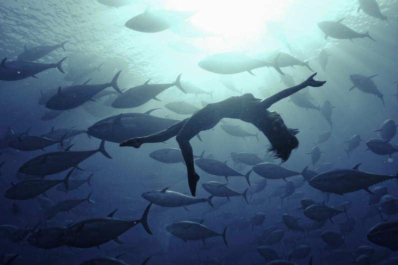 近日,前日本奥运会花样游泳选手原田早穂(Harada Saho)在马耳他海岸的金枪鱼群中翩然起舞。原田早穂曾获2004年奥运会花样游泳项目集体银牌以及2008年奥运会双人铜牌。