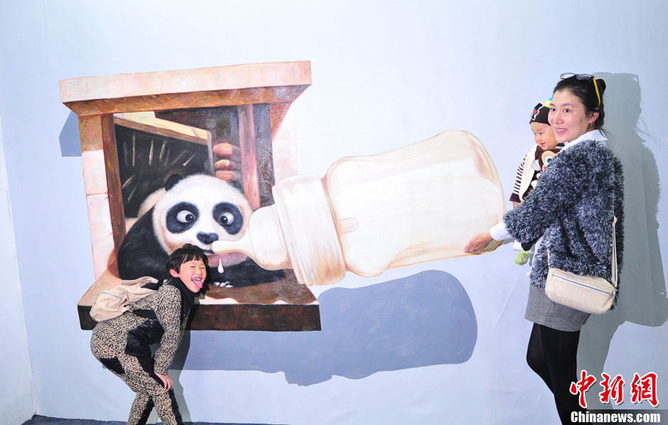 10月19日,沈阳市民在3D魔幻艺术画展上拍照。当日,3D魔幻艺术画展亮相沈阳,吸引了众多市民前来拍照留念。中新社发 于海洋 摄