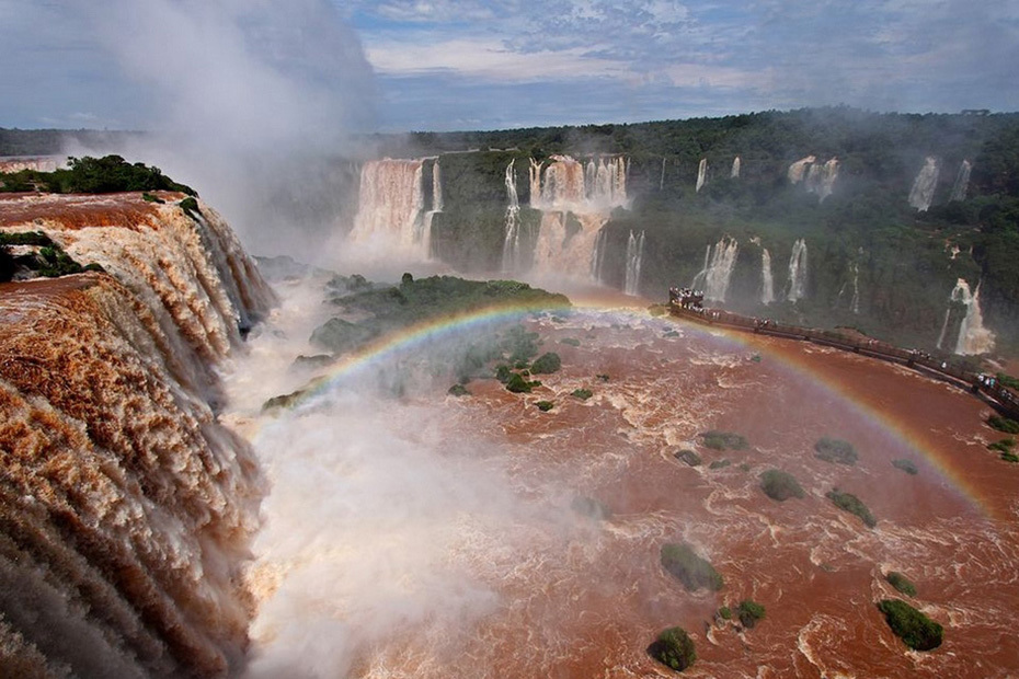 据百科介绍,世界五大瀑布之一的伊瓜苏大瀑布是世界上最宽的瀑布,位于阿根廷与巴西边界上伊瓜苏河与巴拉那河合流点上游23千米处,为马蹄形瀑布,高82米,宽4千米。1984年,被联合国教科文组织列为世界自然遗产。