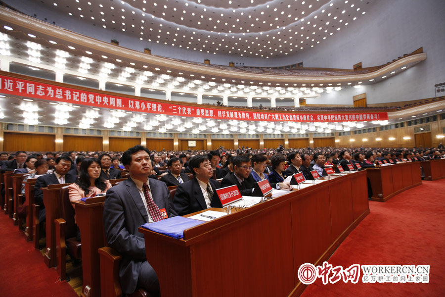 中华全国总工会副主席、书记处第一书记陈豪在致闭幕词时,代表全总十六届执委会对全体代表和全国广大职工的信任表示衷心的感谢。他说,新一届执行委员会任期的五年,是全面贯彻落实党的十八大精神、全面建成小康社会的决定性阶段。我们一定要高举中国特色社会主义伟大旗帜,坚定对中国特色社会主义的道路自信、理论自信、制度自信,坚定不移走中国特色社会主义工会发展道路,全心全意服务职工群众,不断提高工会工作科学化水平,引导广大职工始终做坚持中国道路的柱石,弘扬中国精神的楷模,凝聚中国力量的中坚,全面深化改革的推动者、参与者,为实现中华民族伟大复兴的中国梦作出新贡献。图为大会现场。中工网记者韩靖摄