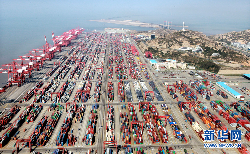 这是在警航巡逻直升机上拍摄的上海自贸区洋山港集装箱码头(10月29日摄)。新华社记者凡军摄