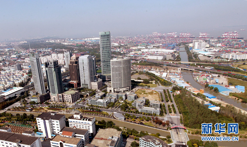 这是在警航巡逻直升机上拍摄的上海自贸区外高桥区域(10月29日摄)。新华社记者凡军摄