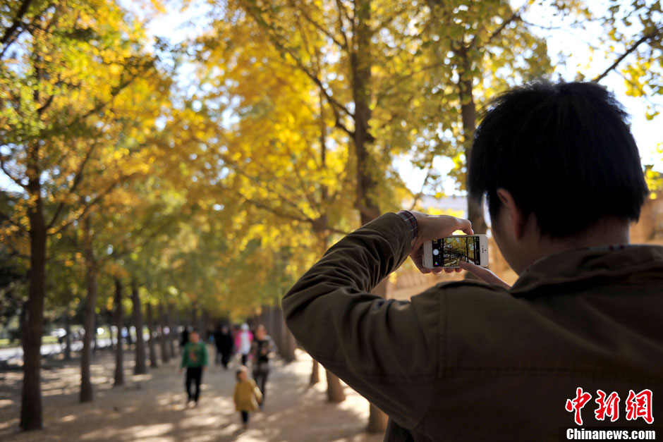 北京“银杏大道”尽赏金秋落英缤纷